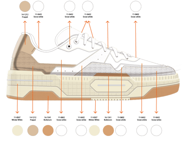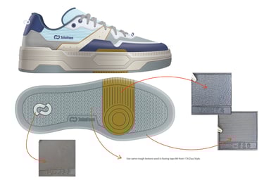 Surface textures for both EVA and rubber components were also carefully selected to enhance the overall product finish and identity.