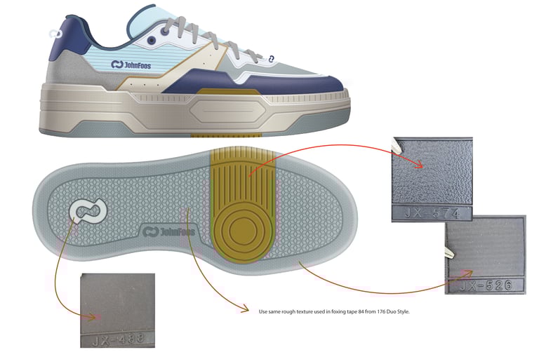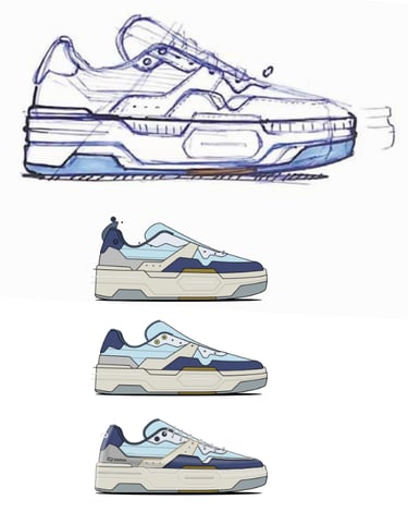 During development, I focused on refining key technical and aesthetic aspects of the product, including sole proportions, material selection and color direction, working in collaboration with the factory to achieve the final result.