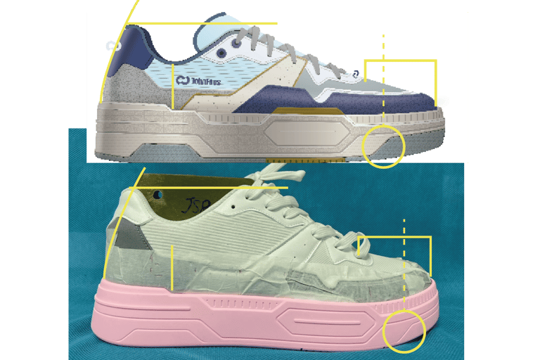 Particular attention was given to the sole design, where proportions and height were reworked to better align with the intended aesthetic and functional goals of the product.